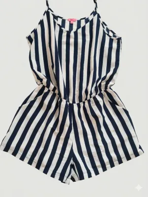 Macaquinho listrado azul marinho sem lycra G