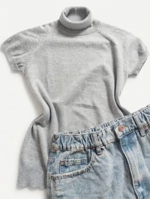 Blusa Tricô Gola Alta Cinza P/M