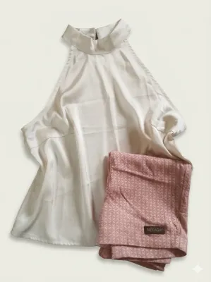 Blusa seda branca gola alta veste P/M